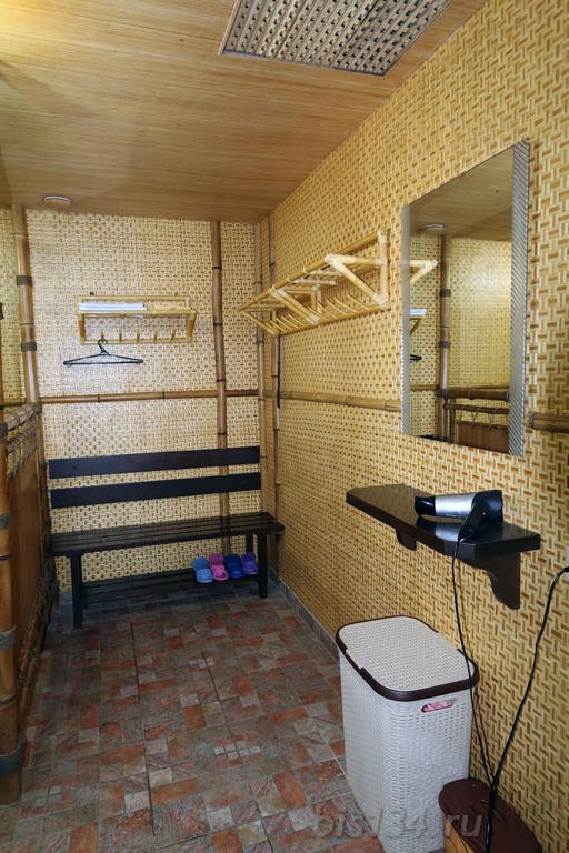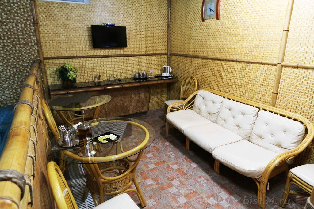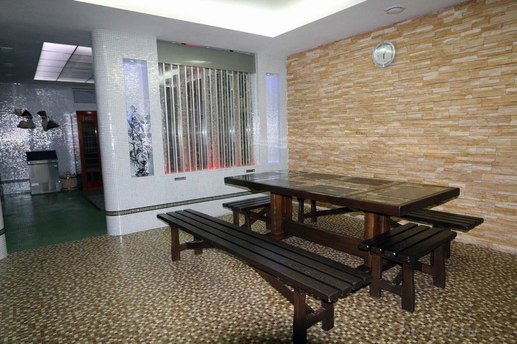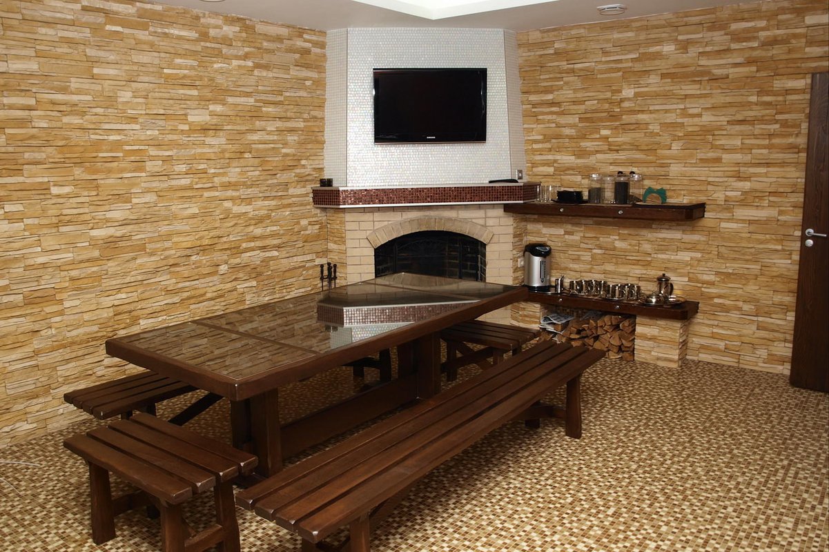 Не хочется в бассейн? Не беда! Вместо этого можно провести время в нашей комнате отдыха. Мы ставили своей целью создать здесь уютный, практичный интерьер из преимущественно натуральных, безопасных материалов, подобрать мебель, которая будет в равной степени удобной и эстетичной. Надеемся, что вам понравится! Для поддержания атмосферы отдыха мы можем предложить вам камин и караоке. У нас нет собственной кухни, но мы ничего не имеем против, если вы придете со своей едой и совместите посещение бани с небольшим застольем. Главное помните, что плотная трапеза незадолго перед посещением парной - это не самая удачная идея, по мнению докторов. А вот после парной можно трапезничать смело!